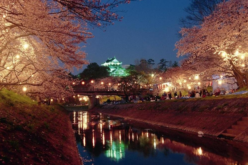 約千本のソメイヨシノが植えられている桜の名所で、ぼんぼりに照らされた岡崎城天守閣とともに眺める夜桜は風情があります。