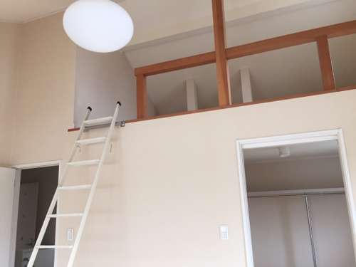 部屋の一部を二層式にしたスペースにはしごを使って出入りする空間です。